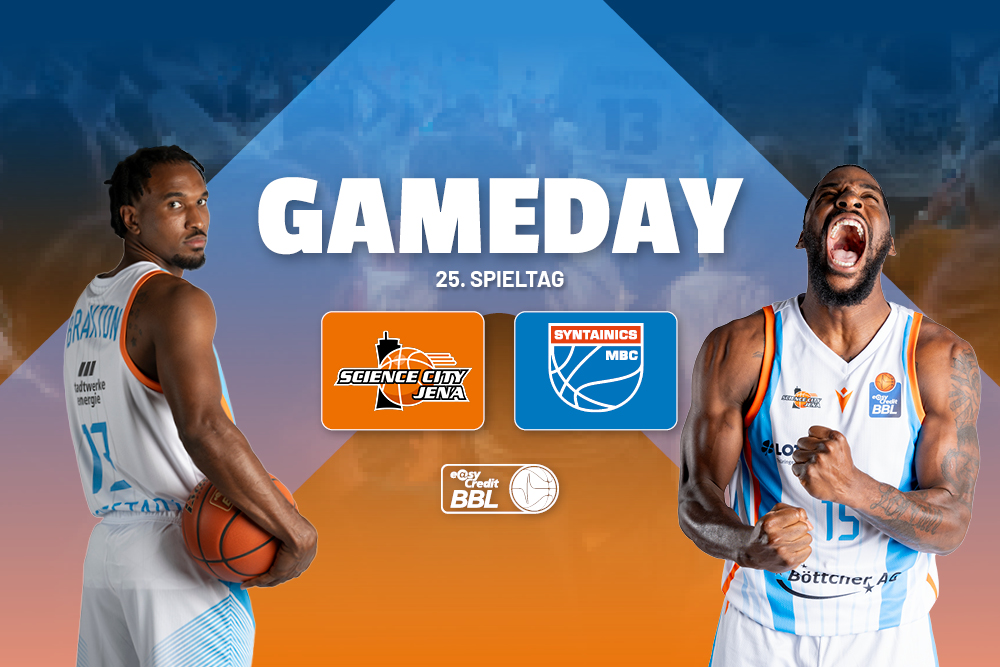 25. Spieltag Easy Credit BBL 21.03.2026 Einlass: 14:30 Uhr Beginn: 16:00 Uhr Tickets findet ihr Online unter: www.baskets-jena.de Erstklassiger Basketball mit Science City Jena in